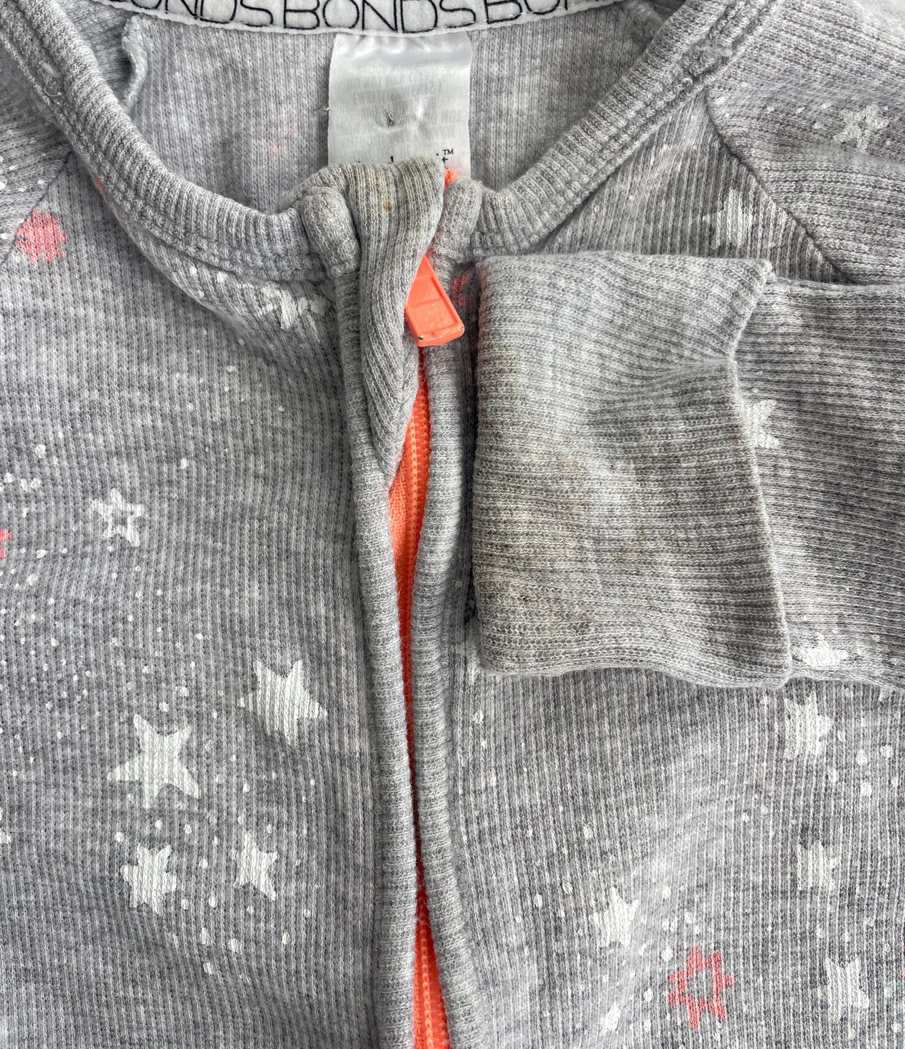 Size 3-6 months bonds wondersuit has discolouration on collar and cuffs