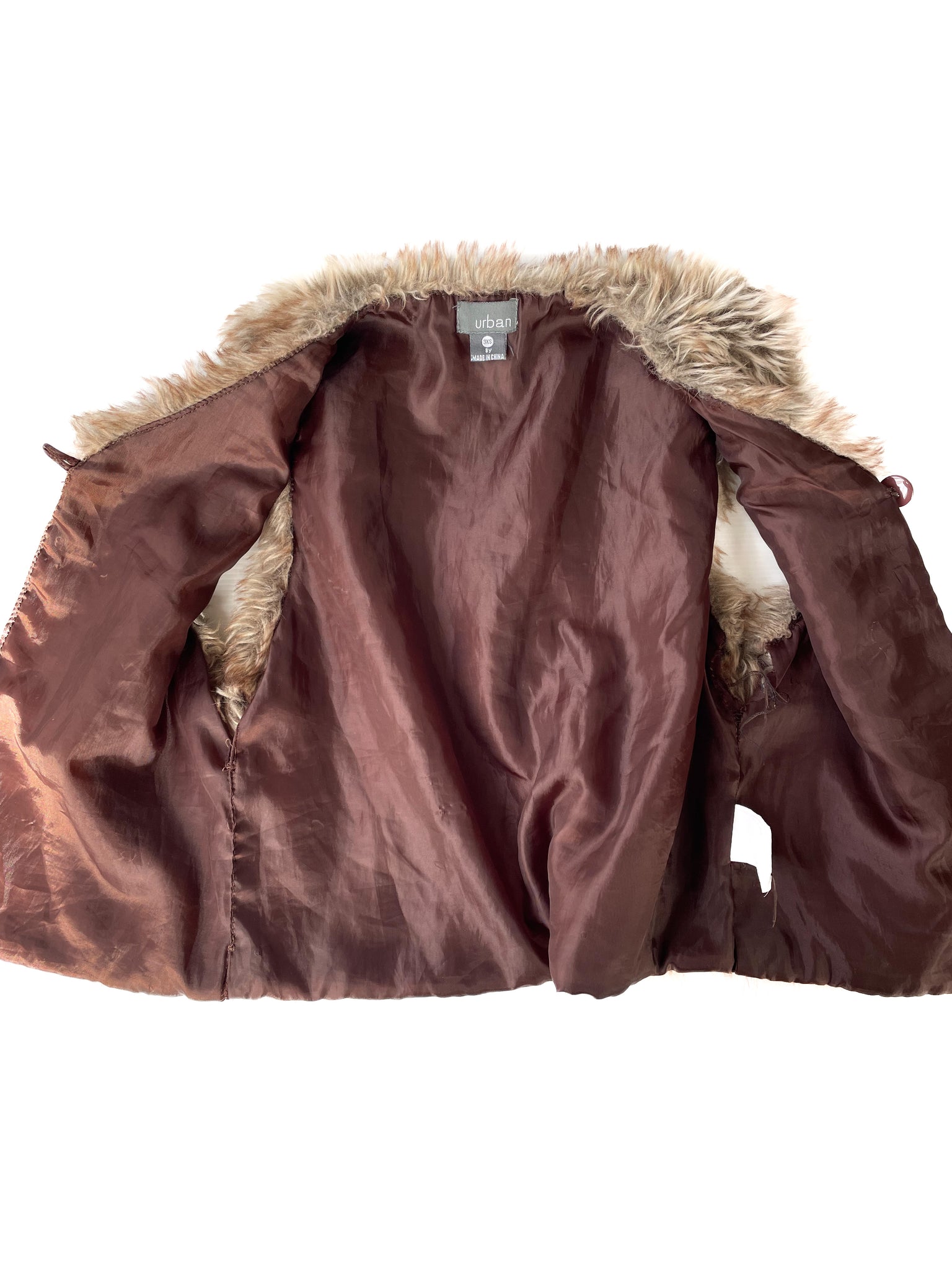 Size 8Y faux fur vest. Stiching has come away in lining under both arm pits. Doesnt effect use as only superficial and can’t be seen as it’s on the inside