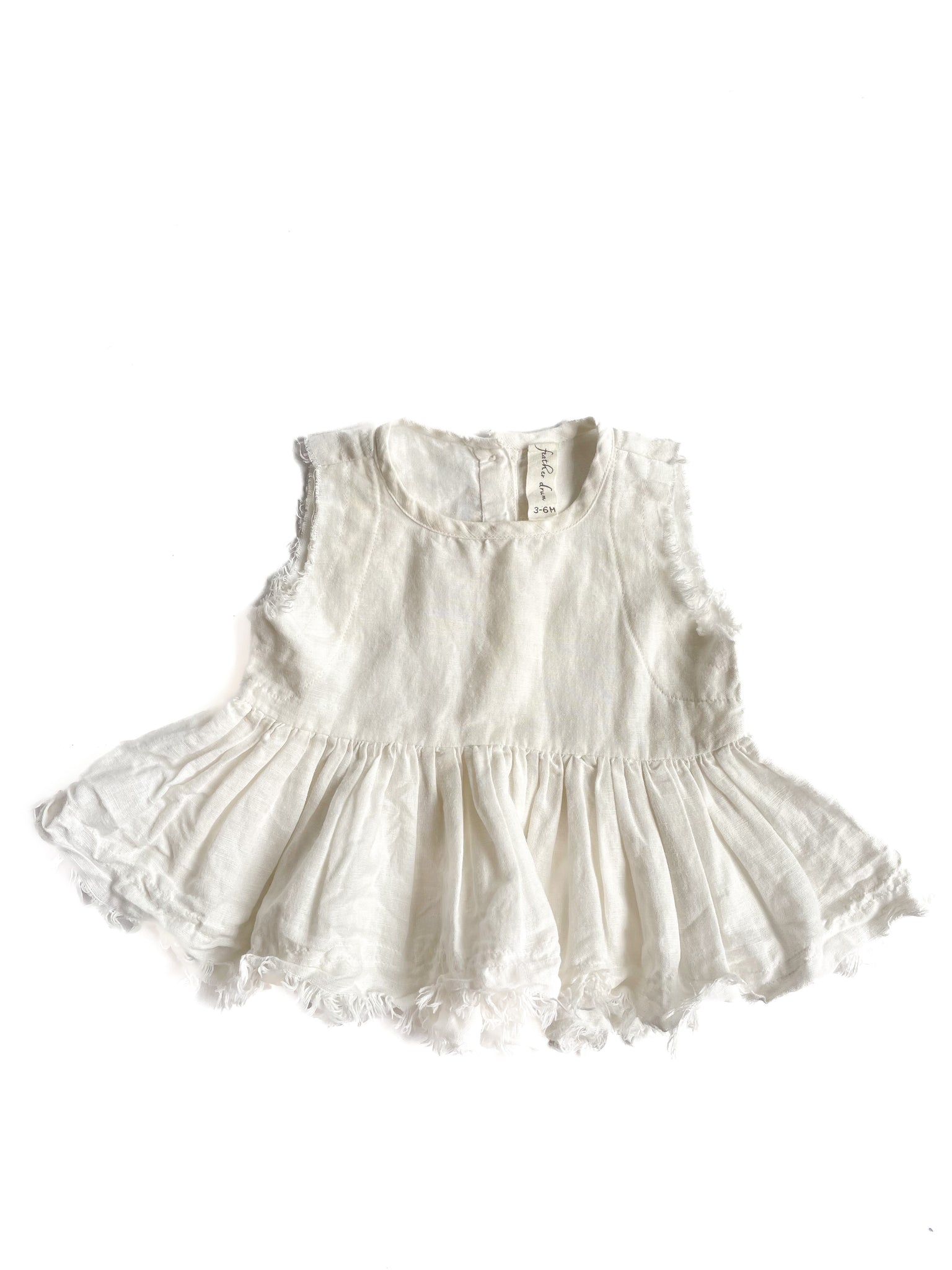 Tagged size 3-6 but could fit 6 months plus as generous sizing. Blouse from feather and drum in good condition