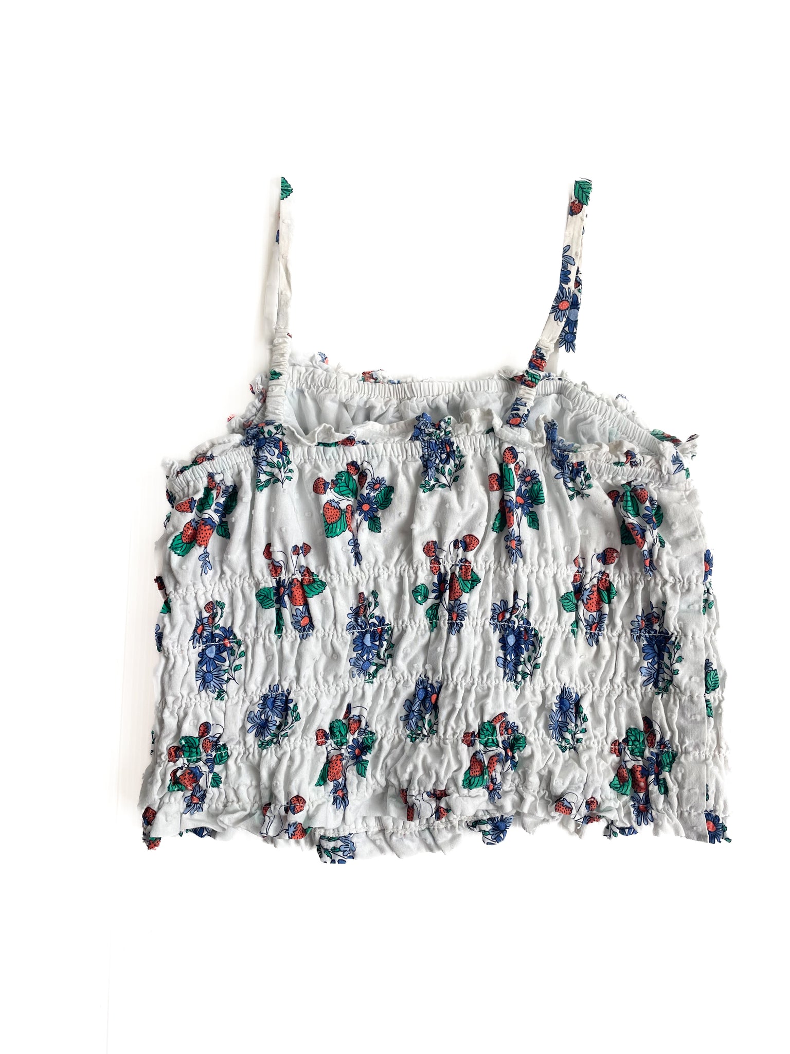 Size 7Y Seed shirred cropped singlet has some discolouration in the straps