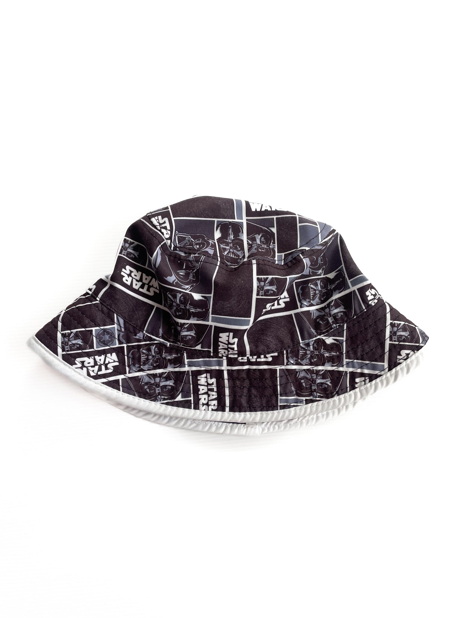 One size . Approx 3-7Y Star Wars bucket hat in good used condition has name written on tag